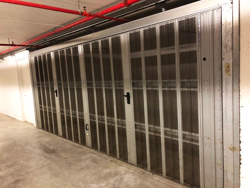 Il box auto misura internamente 5,70×3,80 m e ha una dimensione di 23 mq. Per raggiungere il box, ubicato al terzo piano sotterraneo, si prende l’ascensore. Davanti al box coperto c’è un ampio spazio di manovra e di fianco ci sono i servizi igienici.